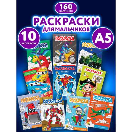 Набор детских раскрасок Prof-Press Для мальчиков А5 10 штук
