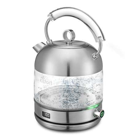 Для ваших любимых горячих напитков! Электрический чайник Kitfort KT-6172 – лучший выбор для ценителей горячих напитков! Прибор может не только вскипятить воду, но и нагревать её от 40 до 100°C, что очень удобно для заваривания разных сортов чая или приготовления детского питания. Настройте необходимую температуру! Регулятор температуры настраивает температуру нагрева от 40 до 100°C с шагом 10°C. При повороте регулятора по часовой стрелке – температура будет увеличиваться на 10°C, при повороте против часовой стрелки – уменьшаться на 10°C. Сенсорное управление Сенсорная кнопка включает и отключает кипячение, нагрев до заданной температуры и режим поддержания температуры. Кнопка оборудована световым индикатором: зеленый – режим ожидания, красный – нагрев, мигание красным – режим поддержания температуры. Поддержит нужную температуру! Чайник оснащён функцией поддержания температуры воды в течение двух часов. Для включения режима поддержания температуры нужно нажать и удерживать кнопку «Вкл/Выкл». Для максимального удобства текущая температура воды в чайнике отображается на дисплее. Защита от накипи Широкая форма носика позволяет точно наливать воду в чашку без расплёскивания и брызг и быстро наполнять её. В носике чайника расположен съёмный фильтр, который задерживает частички накипи и предотвращает их попадание в чашку. Лёгкая и удобная очистка Чайник КТ-6172 имеет съёмную крышку и большое горлышко, что облегчает доступ внутрь чайника при его чистке и во время удаления накипи. Сочетание качества и красоты! Корпус чайника выполнен из стекла и нержавеющей стали, а крышка и подставка – из пластмассы и нержавеющей стали. Для удобства использования прибора мерная шкала нанесена на прозрачную часть корпуса. Минимальный объем чайника 0,5 л, максимальный – 1,7 л. Всё для удобства использования! Подставка с центральным контактом даёт возможность располагать на ней чайник в любом положении, обеспечивая вращение на 360°. Снизу имеется отсек для хранения шнура, в который можно смотать излишки шнура электропитания, чтобы он не мешал на столе. Комфорт и безопасность Ручка чайника КТ-6172 сделана из пластика, поэтому она не нагревается и позволяет комфортно держать её в руке при заваривании любимых напитков! Топ-дизайн! КТ-6172 не только притянет взгляды, но и согреет прохладным вечером. Мы не только разработали уникальный дизайн, но также отвечаем за качество и функционал девайса. Радуйте себя и близких, а мы порадуем вас нашими модными новинками! Вес брутто 1,8 кг Мощность 1850-2200 Вт Емкость 1,7 л Выбор температуры 40-100°C с шагом 10°C Поддержание температуры 2 ч Материал колбы стекло и нержавеющая сталь Материал крышки нержавеющая сталь Материал фильтра от накипи нержавеющая сталь Длина шнура 0.7 м Размер устройства 226 х 180 х 291 мм Размер упаковки 240 х 205 х 290 мм Вес нетто 1,5 кг Вес брутто 1,8 кг Гарантия - 1 год Срок службы - 2 года