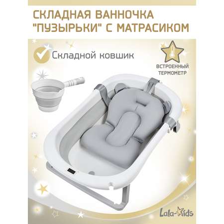 Ванночка для купания новорожденных с термометром LaLa-Kids идеально подойдет для комфортного и безопасного купания малышей с рождения! Правильно организованный процесс купания подарит множество приятных эмоций малышу и его родителям! Складная ванночка удобна в хранении и позволит вам сэкономить место в вашем доме, толщина в сложенном виде всего лишь 9 см.