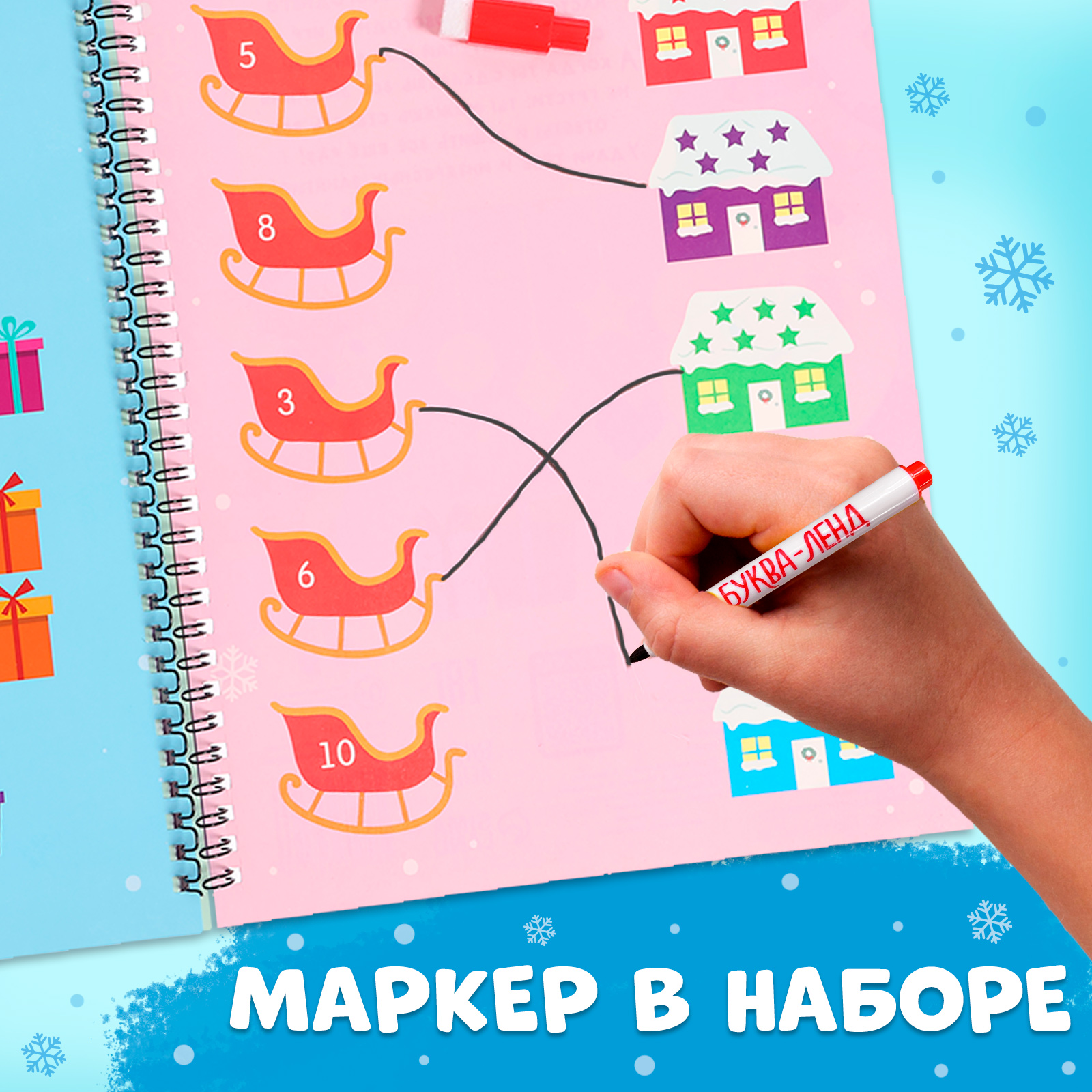 Книга «Новогодние задачки» Буква-ленд многоразовая с маркером 38 заданий