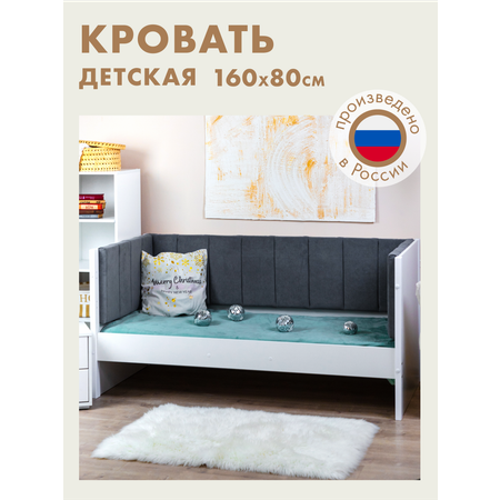 Кровать детская 160*80 Алатойс подростковая деревянная с велюром серая