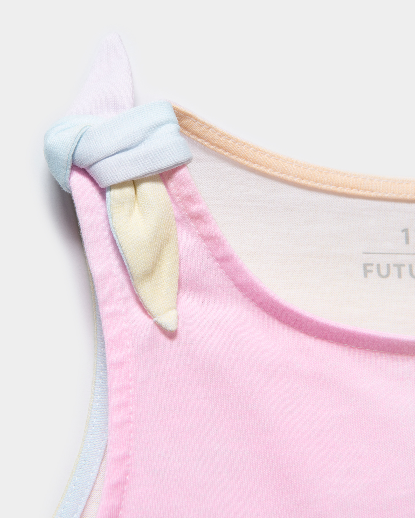 Цветная майка для девочки Futurino с декоративными узелками на плечиках.