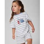 Полосатый махровый комплект для девочки Baby Go Trend из шорт и футболки с цветным принтом.