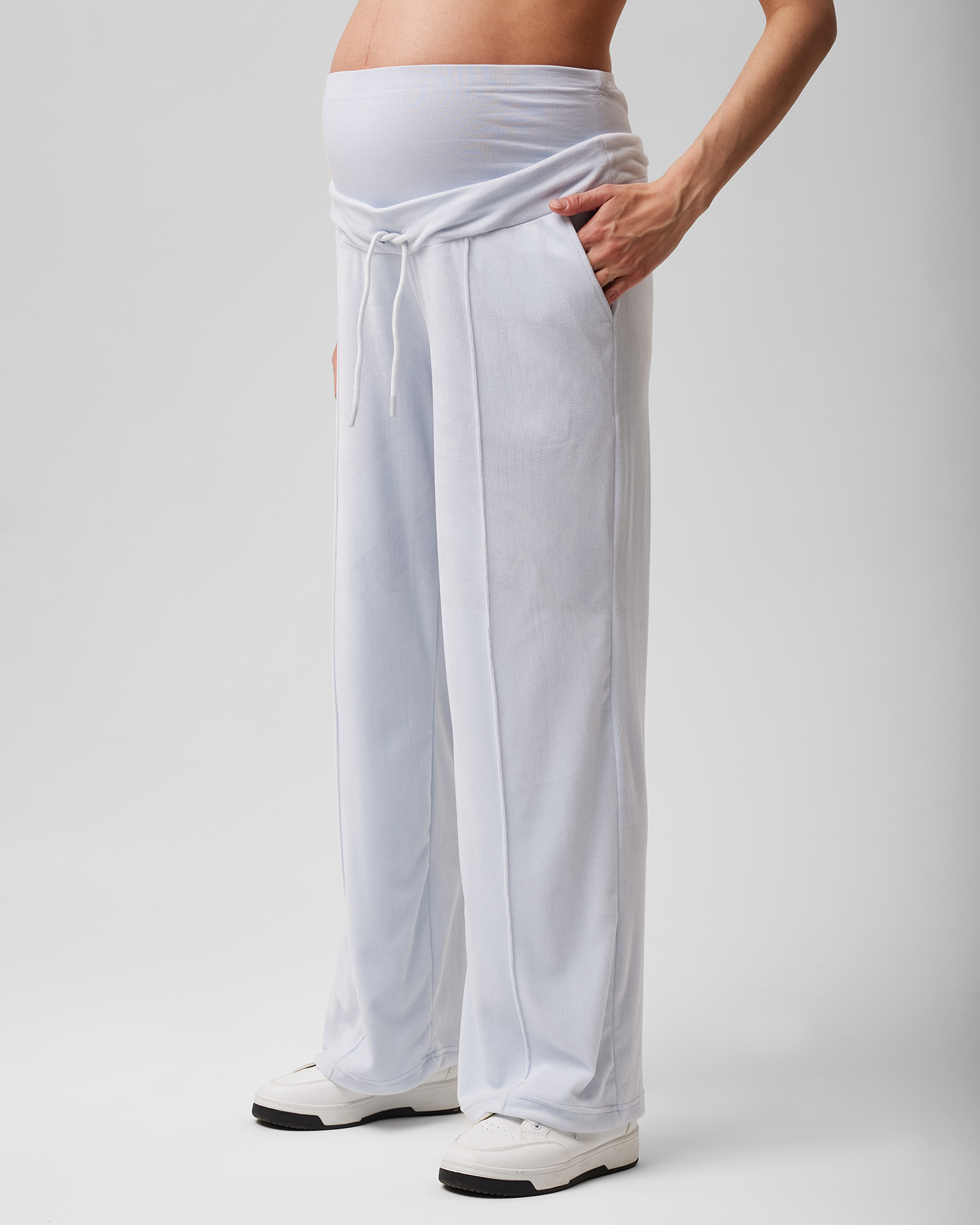 Широкие велюровые брюки для беременных Futurino Mama голубого цвета.