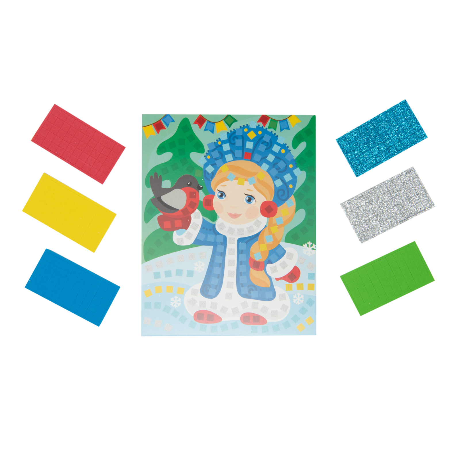 Детская самоклеящаяся аппликация с новогодними мотивами «Снегурочка» обязательно привлечет внимание малыша, а, чтобы она стала еще привлекательней, придется приложить старание и усидчивость при наклейке квадратиков. Этот процесс превосходно разовьет моторику непослушных пальчиков и стимулирует творческие наклонности.