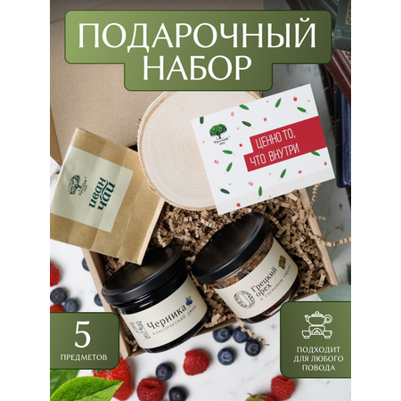 Подарочный набор «Ценно то, что внутри» №5 от бренда «Русский Лес» - это идеальный подарок для тех, кто ценит качество и натуральность. В состав набора входит варенье из грецкого ореха в сосновом сиропе (130 г), джем из черники ГОСТ (130 г), ароматный иван-чай с листьями вишни и смородины и деревянная подставка под горячие напитки. Все продукты изготовлены из высококачественных ингредиентов и натуральных продуктов, что делает их не только вкусными, но и полезными для здоровья.