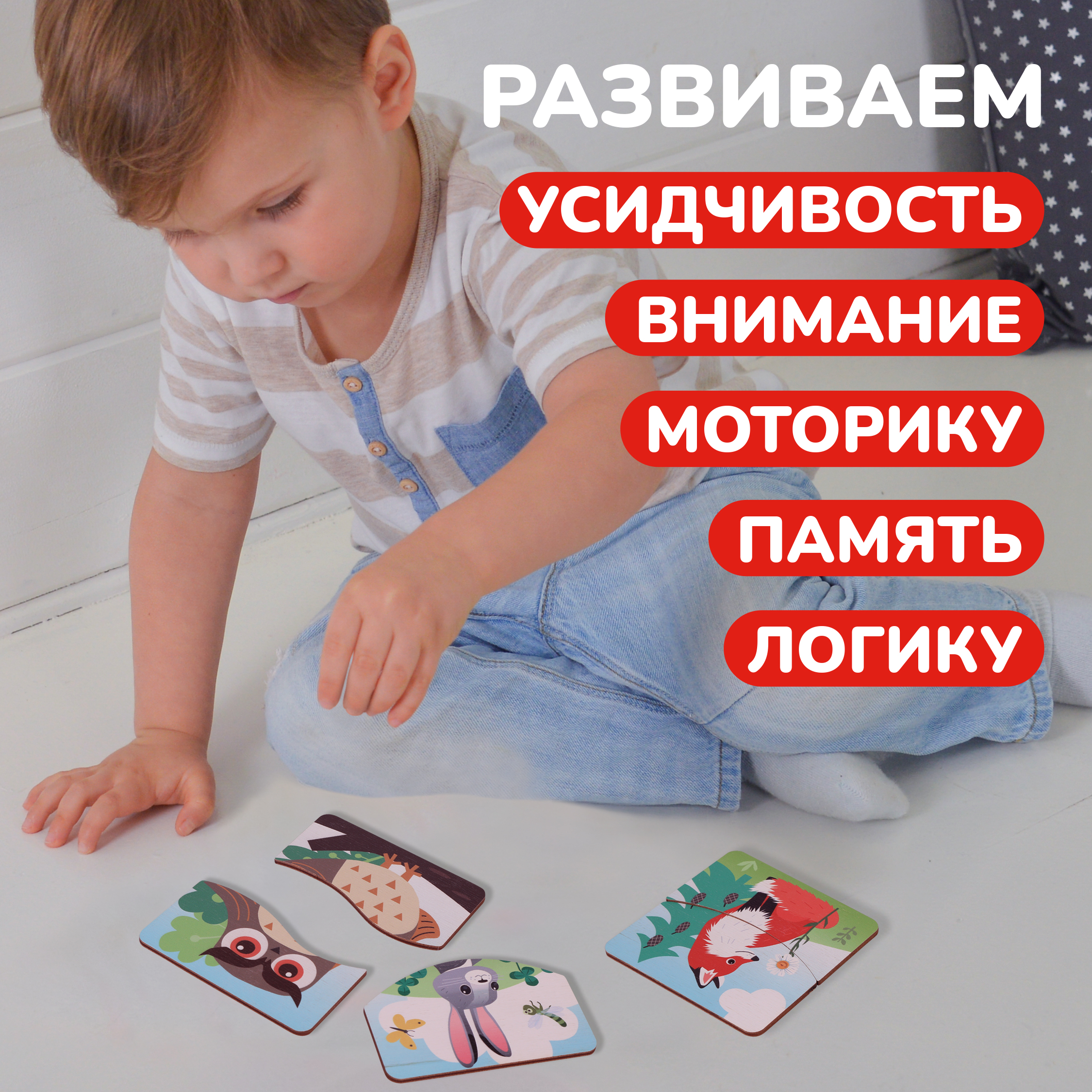 Развивашки способствуют улучшению мелкой моторики, памяти и логики. Тактильные ощущения от гладких деревянных деталей maxi делают сборку приятной и безопасной для детских пальчиков. Благодаря крупным элементам малыши легко соединяют детали, создавая красивую картинку.