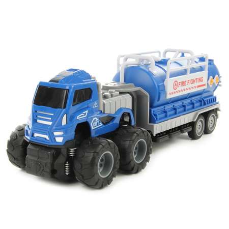 Машина катается вперёд и назад, колеса прорезиненные, толстые шины. Протекторы на шинах обеспечивают более устойчивую сцепку с поверхностью. Огнетушитель на цистерне вращается. Цистерна снимается.