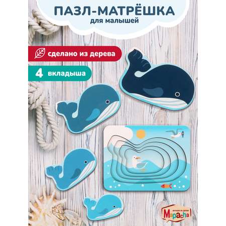 Конструкция включает 4 слоя: от маленького китенка до большого рыбы-кита, что позволяет собирать пазл слой за слоем, как картинку. Изготовлено из качественной фанеры, все детали тщательно отшлифованы и безопасны для детских рук. Крупные пазлы тренируют логику, внимание и моторику, способствуя развитию малыша через игру.