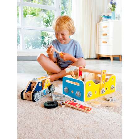 Конструктор Hape "Мастерская" Ящик для инструментов, 83 элемента E3220_HP