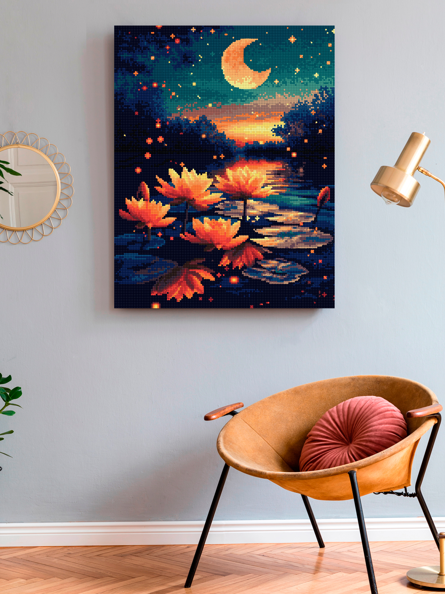 Алмазная мозаика на подрамнике 40х50 см Ночной пруд