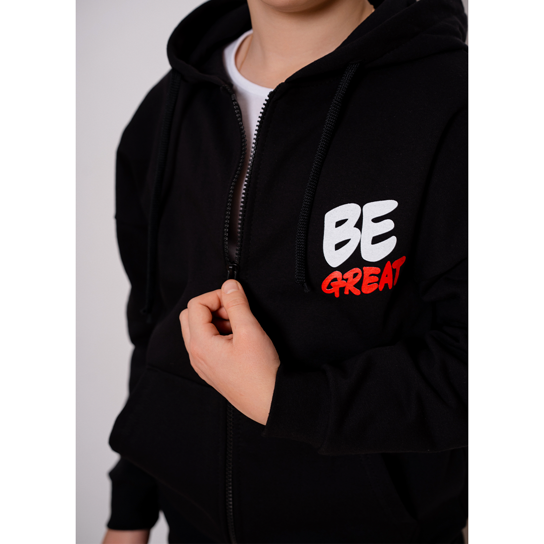 1) Толстовка на молнии с капюшоном, имеются боковые карманы. Манжетки и низ кофты на резинке.