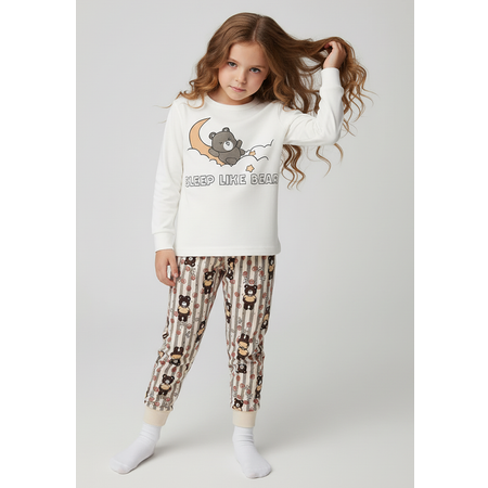 Пижама для мальчика и девочки состоит из джемпера и брюк. Пояс брюк на резинке.