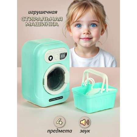 Стиральная машинка Veld Co игрушечная с корзинкой и вешалками барабан вращается звук