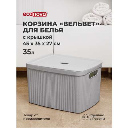 Корзина для белья с крышкой Econova Вельвет 45х36х27 см 35 л светло-серый флэк