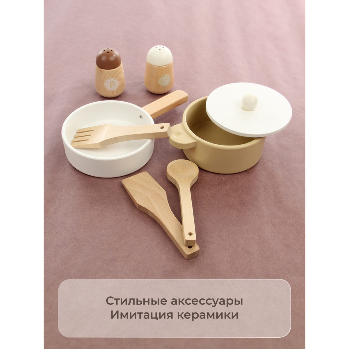 Детская кухня Lisa Doll деревянная с посудой световые и звуковые эффекты