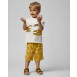 Летний комплект для мальчика Baby Go из белой футболки и жёлтых шорт, декорированных принтом с тиграми.