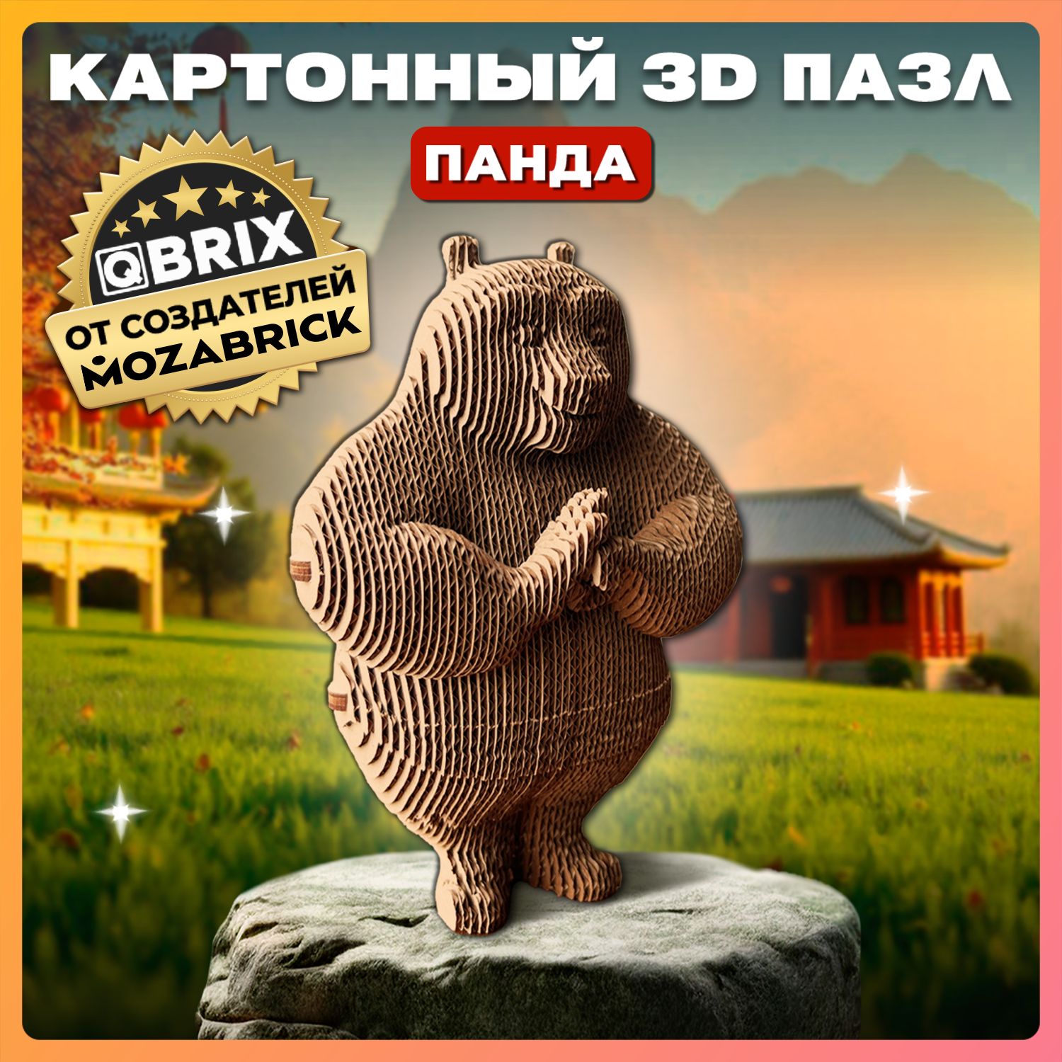 Картонный 3D пазл от QBRIX Панда — это интерьерный 3д конструктор из картона, изготовленный из органических материалов. 3D конструктор из картона прост в сборке, все детали вырезаны и пронумерованы, для создания объемной фигуры вам не понадобятся ножницы. Картонный пазл QBRIX легко собрать по инструкции, это займет около 60 минут, вам нужно только вынуть детали из листа картона и соединить их. Конструктор из картона позволяет развить мелкую моторику, усидчивость и концентрацию внимания. Процесс сборки понравится каждому, подойдет и для детей, и для взрослых.Статуэтка панды для интерьера не только дополнит обстановку, но и поможет раскрыть творческие способности. Картонный 3D конструктор можно раскрасить красками или фломастерами. Для вашего удобства мы создали электрический распылитель фломастеров - фломограф, превращающий их в краску-спрей. Картонная фигурка панды произведена в России и сертифицирована для детей.