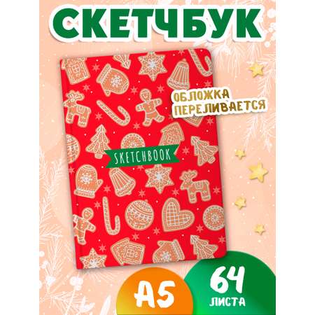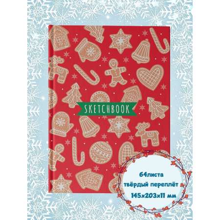 Блокнот новогодний скетчбук А5 64 листа. Имбирные пряники