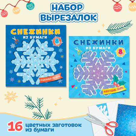 Снежинки бумажные Проф-Пресс для вырезания 2 набора в комплекте по 8 узоров. Волшебный снегопад+нг узоры