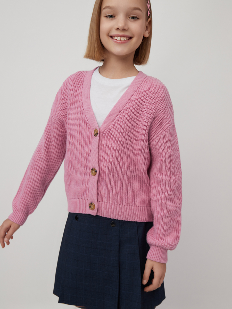 Пряжа с большим содержанием хлопка делает кофточку очень комфортной в носке для ранней осени или второго слоя зимой. Гигиеничный теплый и дышащий трикотаж, свободный крой и оптимальная длина обеспечат ребенку свободу движений и комфорт в течение всего дня. Эластичные резинки по вороту, рукавам и нижнему краю изделия обеспечивают идеальную посадку при любом телосложении ребенка. Кардиган прекрасно подходит для школьных будней и праздничных мероприятий. Благодаря широкой размерной сетке, каждый ребёнок, от школьника до подростка, сможет найти свой лучший кардиган. Добавка 40% акрила в пряжу способствует тому, что вещь хорошо носится без катышков, практически не мнется, легко стирается и быстро сохнет.