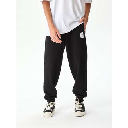 Прямые брюки-джоггеры для мальчика. Модель с эластичным поясом со утягивающим шнурком и мягкими манжетами выполнена из футера. Брюки дополнены аккуратным задним карманом. Стильный принт с трендовыми нашивками подчеркнет индивидуальность