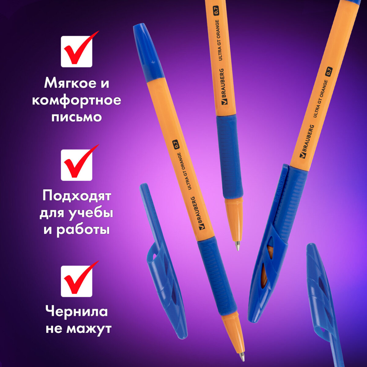 Шариковые ручки BRAUBERG "ULTRA GT ORANGE" – идеальный выбор для тех, кто ценит качество и комфорт. Этот комплект из 20 штук поможет вам надежно справляться с любыми задачами, будь то учеба, работа или домашние записи. Эргономичная зона захвата с резиновым грипом предотвращает скольжение пальцев, обеспечивая удобное письмо. Надежный швейцарский узел PREMEC с диаметром 0,7 мм создает четкую и тонкую линию в 0,35 мм, что идеально подходит для точного письма. Немецкие чернила DOKUMENTAL гарантируют мягкость и комфорт даже при длительном использовании, благодаря чему ваша рука не устанет. Оранжевый корпус ручки не только стильный, но и функциональный, делающий ее легкой и удобной. В комплект входят 20 ручек шариковых с синими чернилами, что делает его отличным решением для тех, кто ищет качественные канцтовары для школьников, студентов и офисных сотрудников. Эти тонкие ручки шариковые - незаменимое пополнение канцелярии для школы, офиса или дома.