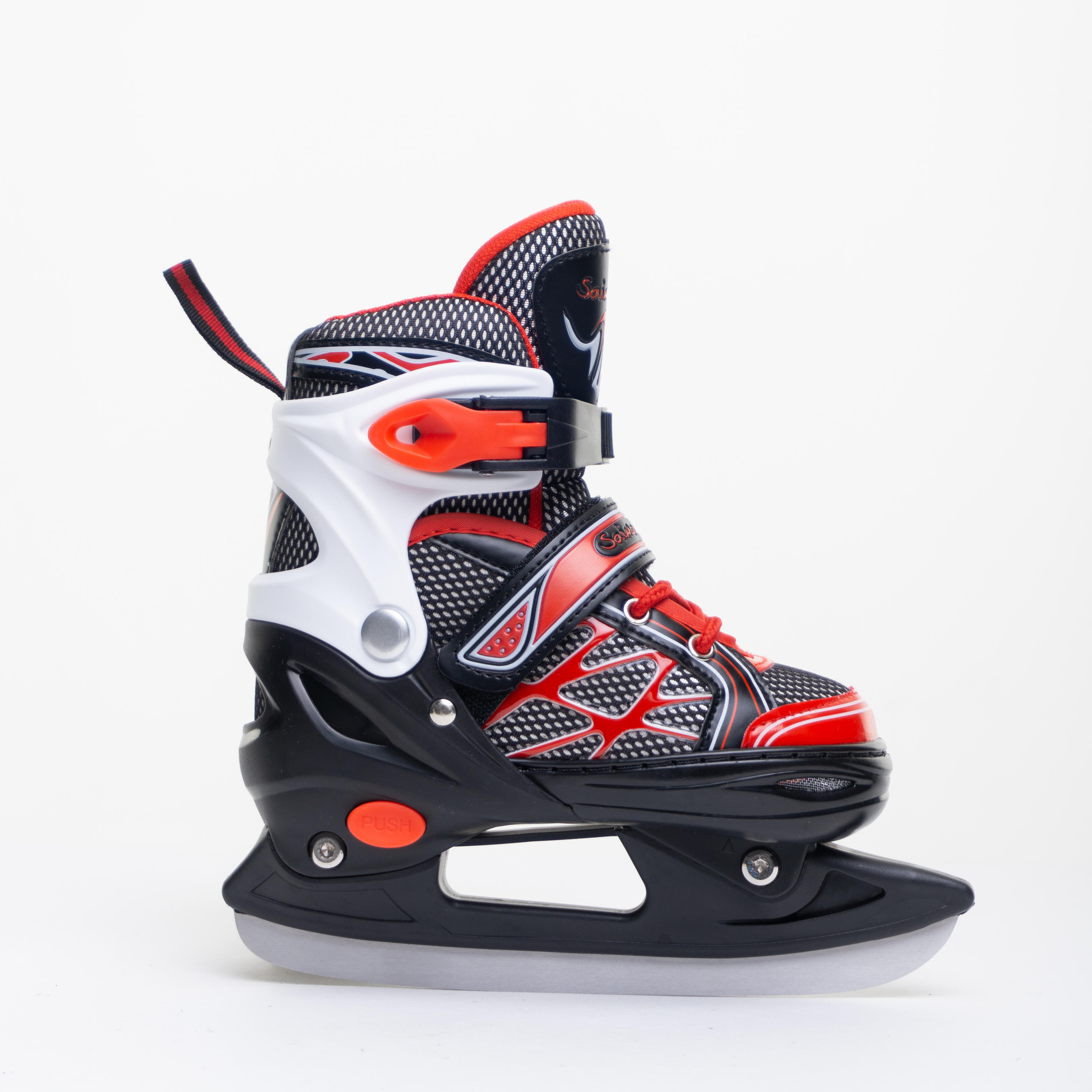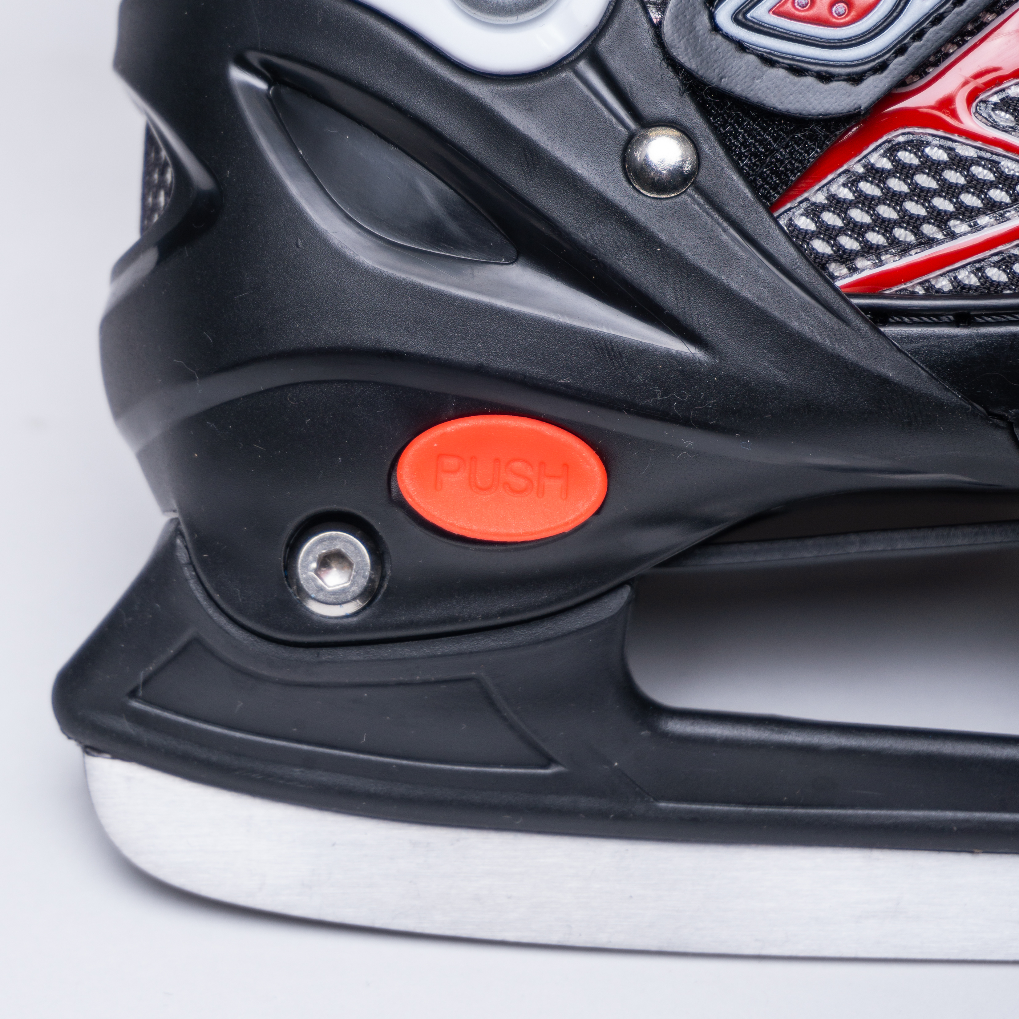 Внимание!!! Коньки маломерят на 1 размер!!! Фирменные детские раздвижные ледовые коньки высокого качества, хоккейные, фигурные или для простого катания. Подходят как для детей, подростков так и для взрослых. Раздвигаются на 4 размера. Размер изменяется в диапазоне выбранного по нажатию кнопки Push у основания пятки. Фиксация шнурками, липучкой и застежкой. Лезвия в мини чехлах. Коньки поставляются в удобной сумке для переноски.Модель В606 с пластиковым твердым носочком (детские, подростковые, взрослые, универсальные). Благодаря тройной системе застежки, нога надежно зафиксирована и защищена. Предназначены для катания как на открытых площадках, так и на крытых стадионах. Толщина лезвия 3мм. Лезвия с заводской заточкой, а значит в первое время об этом не нужно беспокоиться. Внимание!!! Коньки маломерят на 1 размер!!!