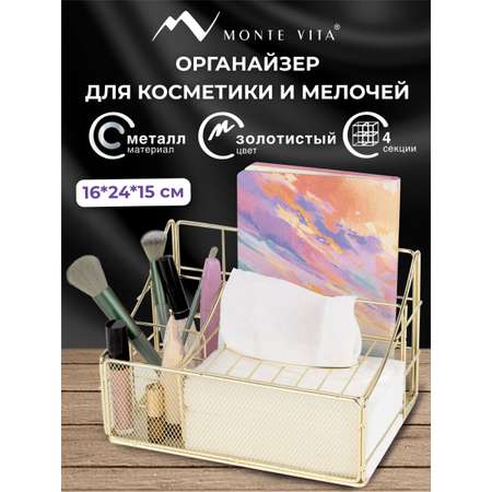 Цена на Органайзер для косметики и канцелярии MONTE VITA металлический настольный 4 секции - 1147 ₽.