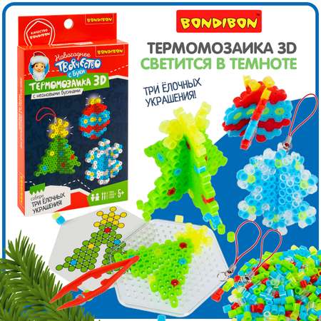 Набор для творчества Термомозаика 3D серии Новогоднее творчество с Буки от Bondibon позволяет ребенку самостоятельно создавать оригинальные украшения и помогает развить полезные навыки. Игрушка будет полезна для тренировки мелкой моторики, логического и образного мышления, усидчивости и внимательности детей. Это отличная развивашка для досуга, которая поможет занять ребенка полезным и увлекательным хобби. Идеальный подарок мальчику и девочке на день рождения, новый год, 23 февраля или 8 марта. А также полезный сюрприз будущему первокласснику на выпускной в детский садик или на 1 сентября в школу. Каждая фигурка состоит из двух частей. Соберите каждую часть на планшете и прогладьте утюгом через кальку. Когда части фигурки остынут, соедините их в 3D модель. Новогодняя поделка готова! Прикрепите к елочке, шарику, снежинке подвески, чтобы повесить украшения на елку или носить объемную фигурку, как брелок. Непременно зарядите игрушки на солнце или под лампой, чтобы они светились в темноте! Создание ярких брелоков из мозайки развивает творческое мышление, аккуратность и готовит руку к письму, а также стимулирует навыки рукоделия. В игровой набор входят: набор термобусин, планшет, калька, цветные схемы, пинцет, подвески. Предназначено детям от 5 лет. Термомозайка — это необычный способ развивать мелкую моторику и творческий потенциал, а также она служит отличной идеей для изготовления оригинальных сувениров, крутых поделок и елочных украшений своими руками. Такое хобби подарит детям радость творчества и полезное занятие в любом возрасте. Эта мозаика отлично подходит как для развивающего досуга ребенка дома. Такие креативные наборы – хиты для закупки родительскими комитетами в детские сады и начальную школу, так как сочетают пользу и доступную цену. Коробка с ярким дизайном - это оригинальный подарочный вариант новогоднего сюрприза под елку. В коллекции товаров от Бондибон представлены популярные детские обучающие и познавательные игры для девочек и мальчиков интересные и необычные развивашки для малышей и подростков!
