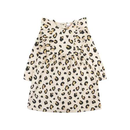 Платье с длинными рукавами для девочки розового цвета с рисунком розы