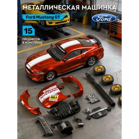Лицензионная сборная металлическая модель Ford Mustang GT- реалистичная копия компактного спортивного автомобиля в масштабе 1:42. Она отлично дополнит игрушечный гараж и станет прекрасным подарком для автолюбителя. Модель машинки детально проработана и выполнена в легко узнаваемом дизайне как у оригинала. Благодаря своей реалистичности, масштабная модель подойдет для коллекционирования. Особенностью модели является возможность тюнинга. В набор входит 15 предметов для внешнего обвеса, среди которых бампер, комплект колес, крышка капота, спойлер и другие. Кроме этого, можно собрать двигатель, что обязательно заинтересует маленьких механиков. У машинки открываются двери и капот. Колеса с резиновыми покрышками и дисками, детально проработанный салон, фары, прозрачные окна- всё как у настоящего автомобиля. Ребенок будет с удовольствием играть с такой машинкой дома и на улице, а благодаря компактным размерам, сможет брать ее в гости или в путешествие. Игрушка развивает мелкую моторику, реакцию и координацию движения, расширяет кругозор и знакомит с техникой. Металлические модельки - отличный подарок для мальчика на новый год, на 23 февраля или на день рождения!