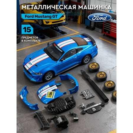 Лицензионная сборная металлическая модель Ford Mustang GT- реалистичная копия компактного спортивного автомобиля в масштабе 1:42. Она отлично дополнит игрушечный гараж и станет прекрасным подарком для автолюбителя. Модель машинки детально проработана и выполнена в легко узнаваемом дизайне как у оригинала. Благодаря своей реалистичности, масштабная модель подойдет для коллекционирования. Особенностью модели является возможность тюнинга. В набор входит 15 предметов для внешнего обвеса, среди которых бампер, комплект колес, крышка капота, спойлер и другие. Кроме этого, можно собрать двигатель, что обязательно заинтересует маленьких механиков. У машинки открываются двери и капот. Колеса с резиновыми покрышками и дисками, детально проработанный салон, фары, прозрачные окна- всё как у настоящего автомобиля. Ребенок будет с удовольствием играть с такой машинкой дома и на улице, а благодаря компактным размерам, сможет брать ее в гости или в путешествие. Игрушка развивает мелкую моторику, реакцию и координацию движения, расширяет кругозор и знакомит с техникой. Металлические модельки - отличный подарок для мальчика на новый год, на 23 февраля или на день рождения!