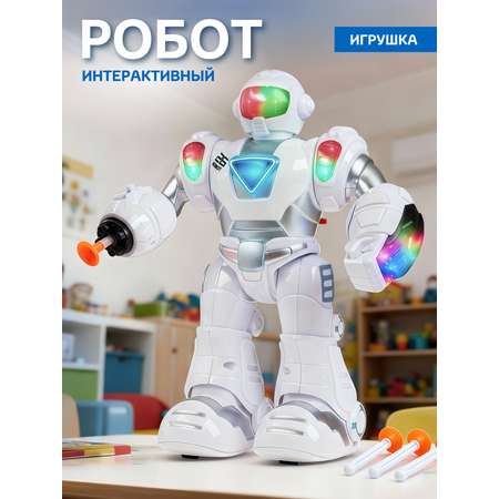 Интерактивный робот также оснащен бластером, который позволяет ему стрелять ракетами. Это добавляет элемент игры и делает процесс еще более захватывающим.