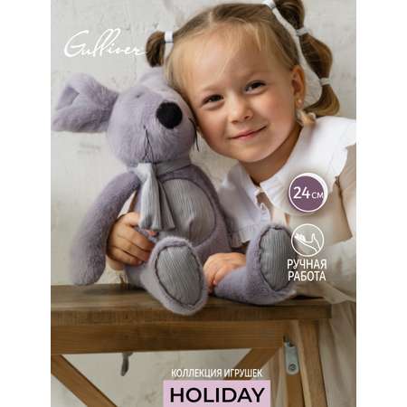 Мышь имеет шелковистую серую шерстку с красивыми вставками на животике, лапках и ушках, что придает ей особый шарм. Модный стильный шарфик добавляет образу игривости и делает еще более привлекательной. Мышонок выполнен из нежного и приятного на ощупь меха, что делает его отличным вариантом для обнимашек и игр. Разнофактурные материалы создают интересные тактильные ощущения, а большой размер — в полный рост 42 см — позволяет использовать как сплюшку и антистресс.