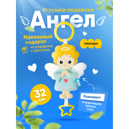 Уникальная игрушка. У ангела нежные шуршащие крылья, которые заинтересуют малыша. Нежная и трогательная – она точно станет первой любимой вещью для малыша. Ваш кроха будет с удовольствием шуршать и изучать не только образ ангелочка, но и развивать тактильные ощущения, знакомясь с фактурой тканевых материалов, ведь это еще и шуршащая мягкая игрушка – у подвески шурщашие крылышки. Также есть прорезыватель-звёздочка, он мягкий, эластичный, и его приятно грызть, а внутри тела – звонкий бубенчик! Аналогов таких игрушек новорожденного в виде ангела нет! Может ассоциироваться у родителей с ангелом-хранителем, особенно, если подвесить у колыбельки.