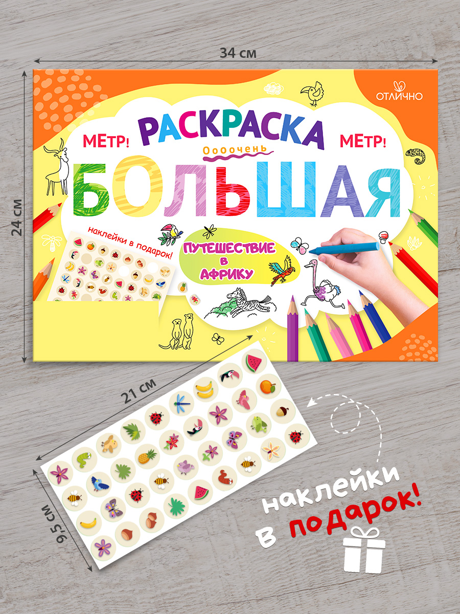 Раскраска плакат гигант для детей Открытая планета звери Африки, 100х70 см учим зверей