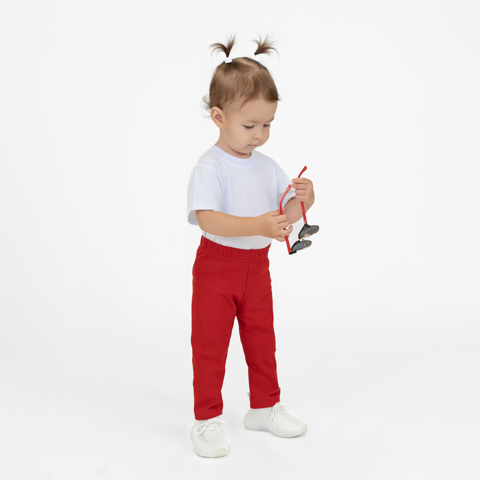 Полотно: рибана гладкая. Особенности модели: трикотажные детские брюки. В пояс вставлена широкая резинка. Выпускаются в однотонном цвете. Красные штаны.