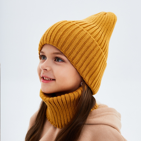 Однотонный детский осенний комплект с отворотом. Состоит из вязаной шапки и шарфа в виде снуда (два в одном). Комплект изготавливается в России из пряжи производства Турции: шерсть с добавлением акрила (30% шерсти, 70% акрил). Комплект подходит для температуры воздуха от -5 до +12 градусов (демисезон: весна, осень). Ушки закрывает дополнительный подворот шапки, а снуд складывается в два раза. Материал мягкий и хорошо тянется, не жмет и не давит голову ребенка, не колется. Форма шапки: тыковка, луковка (в рубчик, лапша). Шарф также называют бафф, хомут или шарф-труба по форме его изготовления. Комплект представлен в двух размерах: 1) 50-54 см для возраста от 3 до 8 лет, 2) 54-58 см для возраста от 8 до 18 лет. Детская модель шапки бини и снуда является универсальной и подойдет для мальчика и девочки. Также комплект отлично подойдет подросткам. Данная демисезонная (весенняя - осенняя) модель представлена в нескольких цветах. Товар сертифицирован в соответствии со стандартами ЕАЭС (ГОСТ) как головные уборы для детей старше одного года и подростков. Для ухода за изделием рекомендуем деликатную стирку при 30 градусах.