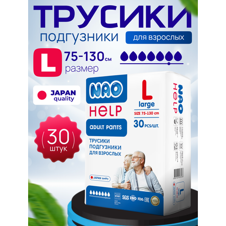 Подгузники трусы для взрослых L (75-130 см) размер 30 штук