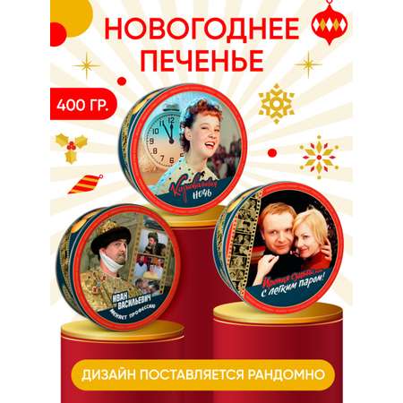 ГК "Сладкая сказка" представляет оригинальный готовый подарок. Это сдобное печенье "Мосфильм" в жестяных банках по 400 грамм с героями любимого многими традиционного новогоднего фильма "Ирония судьбы, или С легким паром!"