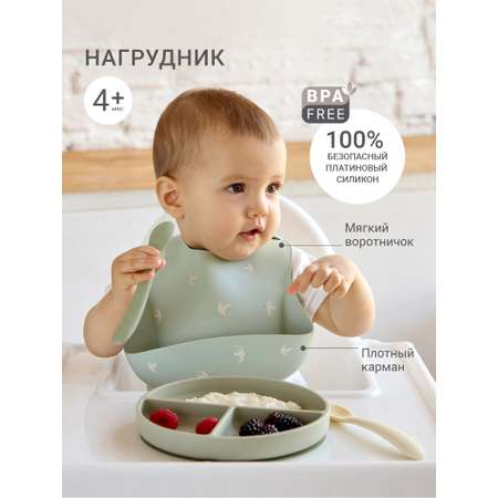 Нагрудники отлично сочетаются со всей посудой бренда по цвету и минималистичному дизайну: это возможность для родителей подобрать стильную комбинацию, отказавшись от пестроты в пользу успокаивающей гармонии цвета.