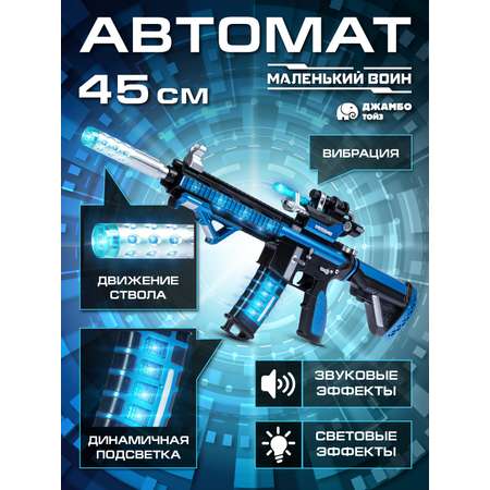 Игрушечный автомат не стреляет пульками, поэтому с ним могут играть даже самые юные поклонники игрового оружия. При нажатии на курок игрушка воспроизводит звуки, красиво светится и вибрирует!