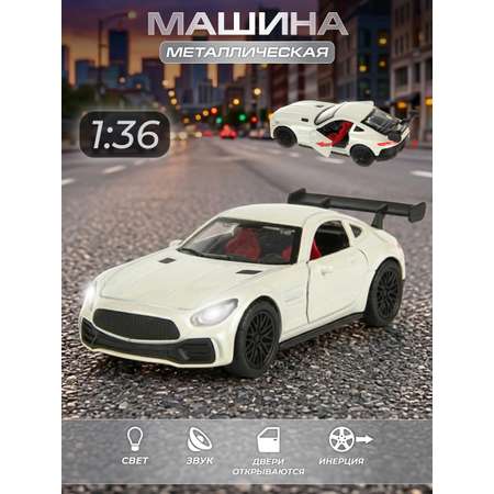 Игрушка машина со звуковыми и световыми эффектами в красивой расцветке. Инерционная машинка оснащена прорезиненными колесами, имеет металлический корпус и компактные размеры, удобно взять с собой. Игрушечная машинка с подсветкой фар и открывающимися дверками изготовлена из прочных и долговечных материалов.