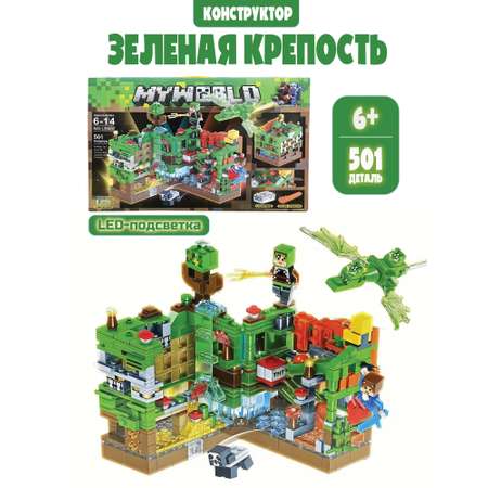Конструктор Зеленая крепость несомненно понравится поклонникам популярной компьютерной игры Майнкрафт. Игровой набор содержит 501 элемент, включая 2 фигурки главных героев. Зеленый Дракон, который также входит в комплект, добавляет игре еще больше интереса и разнообразия. Дракон может двигаться, что делает игру еще более увлекательной и захватывающей.Вам предстоит сразиться с драконом и защитить свою крепость!Готовая конструкция крепости раскрывается как книжка, поэтому набор не занимает много места. Помимо дракона, есть три персонажа – человек с алмазным мечом, человек золотым трезубцем и и чёрно-белая овечка.Конструктор помогает развивать мелкую моторику, фантазию, усидчивость, логическое и креативное мышление. Эти преимущества делают сборку конструктора не только увлекательным, но и полезным занятием для развития различных навыков.
