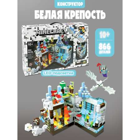 Конструктор Нападение на белую крепость — это набор, созданный по мотивам знаменитой компьютерной игры Майнкрафт, перенесет Вас в мир приключений. Вам предстоит сразиться с Драконом и защитить свою крепость.Особенностью конструктора является способность крепости закрываться и трансформироваться в башенное строение. Набор состоит из 866 деталей. В комплект входят фигурки героев, 1 фигурка дракона, фигурки животных, благодаря которым игра будет более реалистичной и захватывающей.Конструктор помогает развивать мелкую моторику, фантазию, усидчивость, логическое и креативное мышление. Эти преимущества делают сборку конструктора не только увлекательным, но и полезным занятием для развития различных навыков.