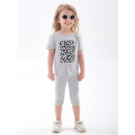 Комплект футболка и велосипедки для девочки. Костюм для девочки изготовлен из ткани кулирка. Футболка детская свободная, облегающие однотонные бриджи. Комплект подходит для прогулок, для дома и детского садика. В таком комплекте ребенку будет комфортно играть и двигаться, т.к. он не стесняет движения.