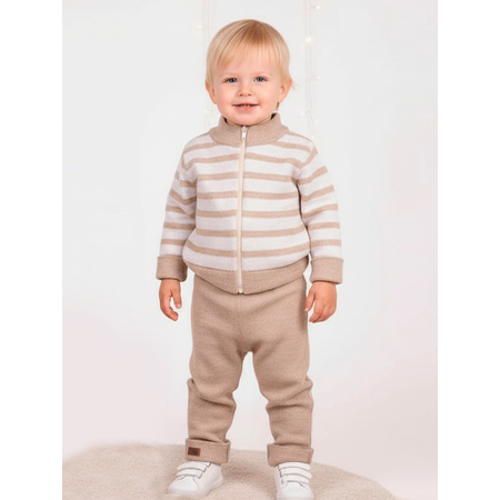 Вязаный костюм спортивный для малыша Совенок Дона свободного кроя не сковывает движений, чудесно подходит для физкультуры, игр на детских спортивных площадках и в развлекательных центрах.