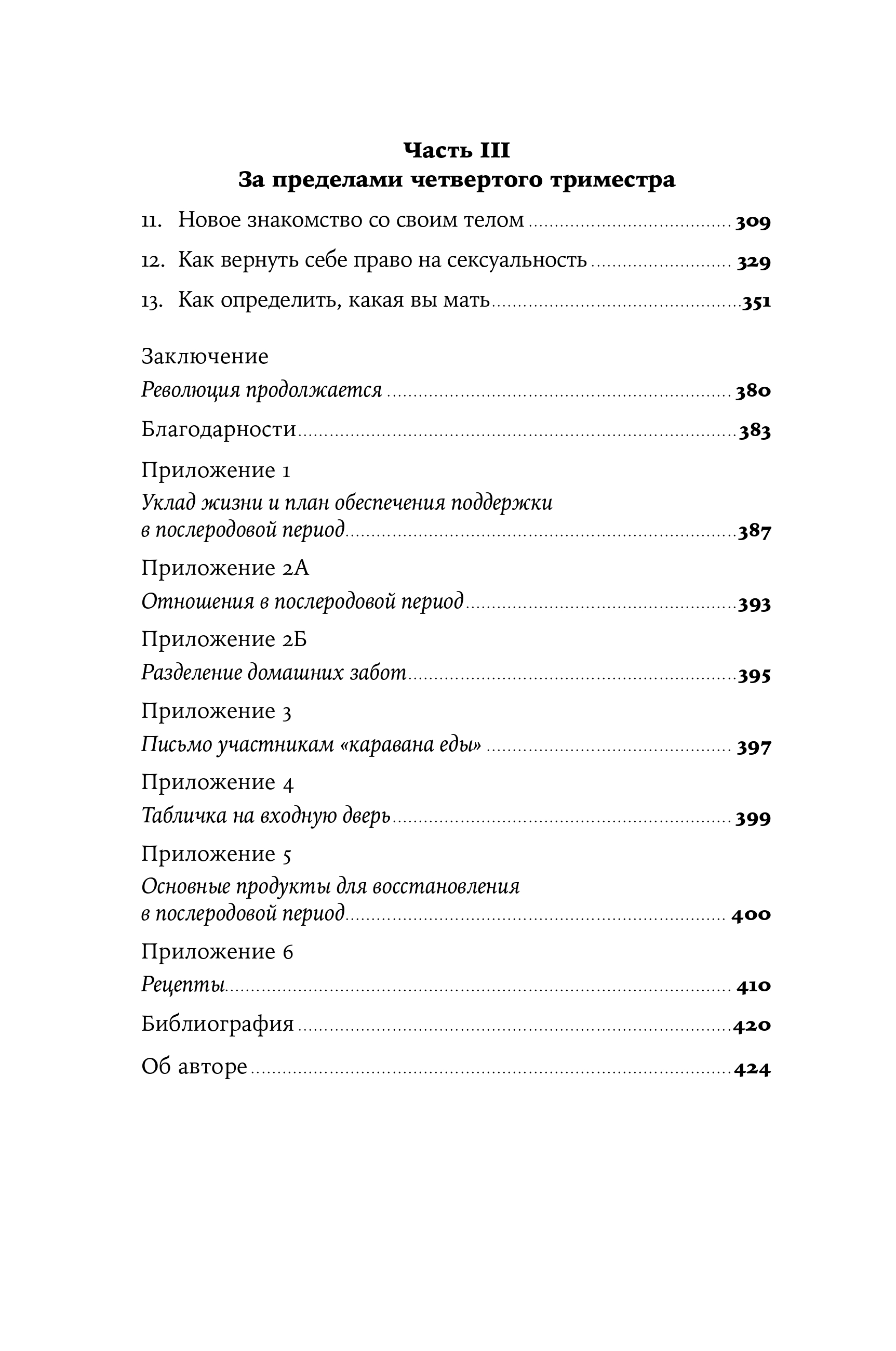 "Многие женщины не подозревают, что первые три месяца после родов так же важны, как и предыдущие три триместра. Вам нужно по крайней мере столько же внимания и заботы, как во время беременности (и даже больше). И если в четвертом триместре мы учитываем свои естественные индивидуальные потребности, мы сможем вернуться к крепкому здоровью в будущем."