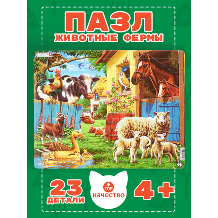 Пазлы Ларсен - это прежде всего обучающие пазлы. Яркий пазл "Животные фермы" предназначен для детей от 3 лет. Он познакомит малышей с разными видами птиц и животных, которых можно встретить на ферме. Многообразие форм вырубки и различные размеры отдельных элементов способствуют развитию мелкой моторики у малышей. Сделанные из высококачественного трехслойного картона, они не деформируются и легко берутся в руки. Все пазлы снабжены специальной подложкой, благодаря которой их удобно собирать. В наборе: 23 элемента пазла. Размер собранного поля - 36,5 х 28,5 см.Цены в интернет-магазине могут отличаться от розничных магазинов.